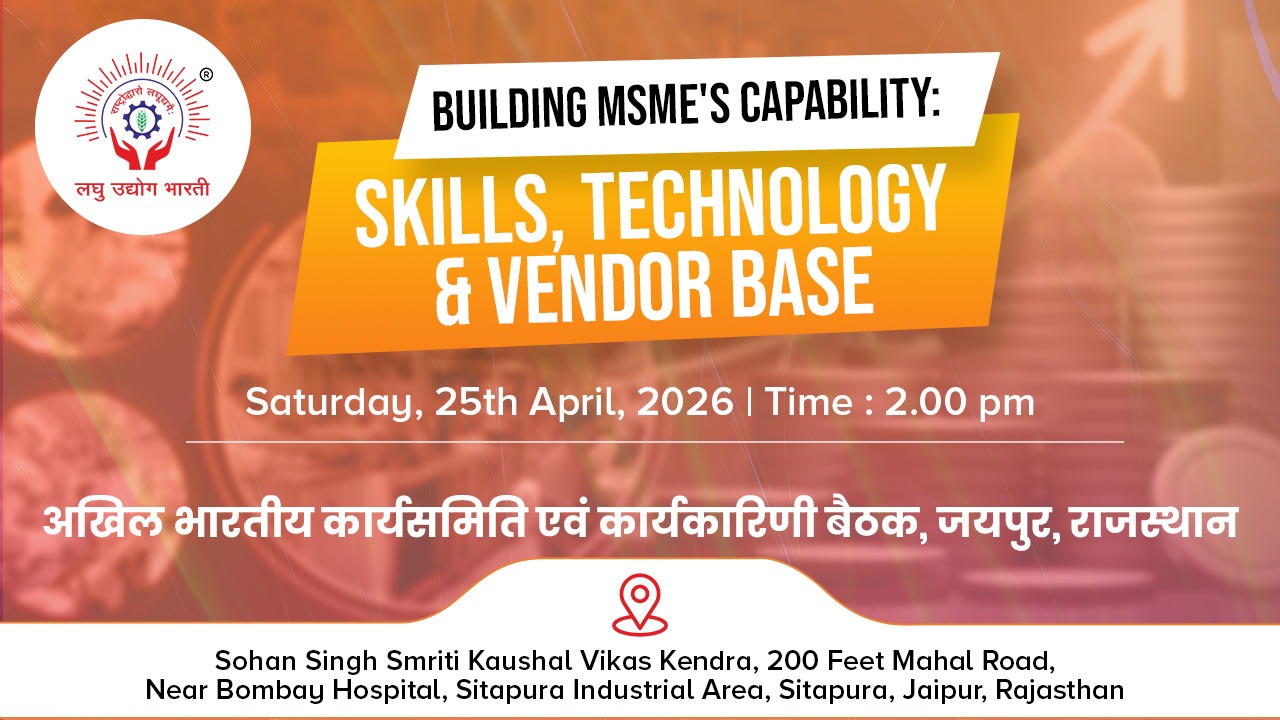 यह अत्यंत हर्ष का विषय है कि लघु उद्योग भारती आगामी 25 अप्रैल 2026 को अपने गौरवपूर्ण 32 वर्ष पूर्ण कर 33वें वर्ष में प्रवेश कर रहा है। इस विशेष अवसर को उत्साहपूर्वक मनाने हेतु 25 अप्रैल को स्थापना दिवस के रूप में एक विशे...